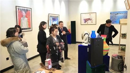 創意空間內,各種風格迥異的原創畫作,3D打印機、鋼鐵俠展示收藏模型、兒童推車、服裝、會議系統、小魚在家視頻對講機器人等等琳瑯滿目。